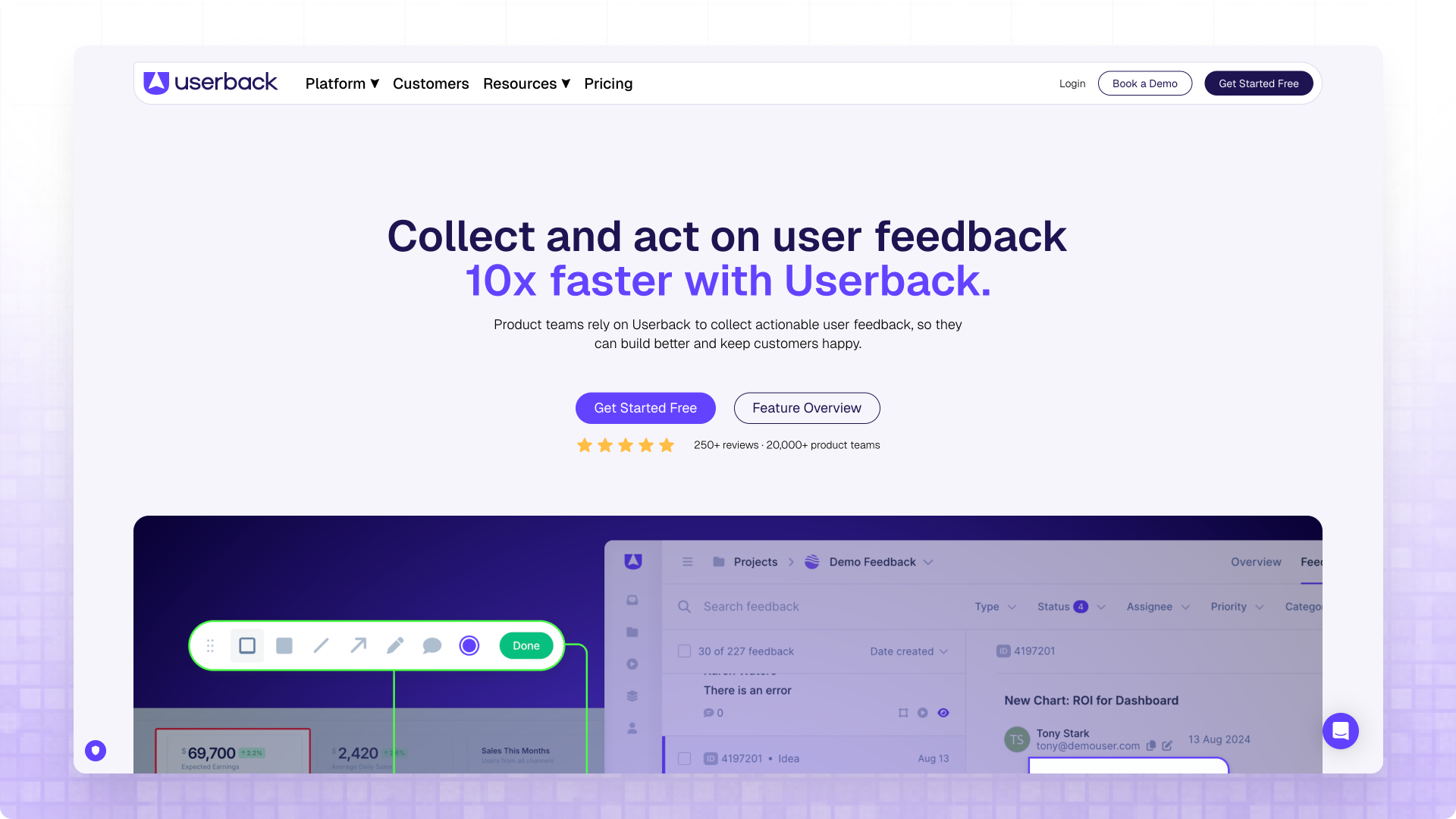 Userback represents the feature-rich end of the visual feedback spectrum, offering an extensive toolkit that extends beyond annotation into session replay, micro surveys, NPS tracking, and comprehensive user research capabilities. The on-page guest portal allows clients to view and work on feedback directly on the webpage without needing to register or log into another platform, which maintains some of the low-friction appeal that makes MarkUp.io attractive. Two-way syncing with project management tools means feedback flows into your existing workflow with bidirectional status updates.
